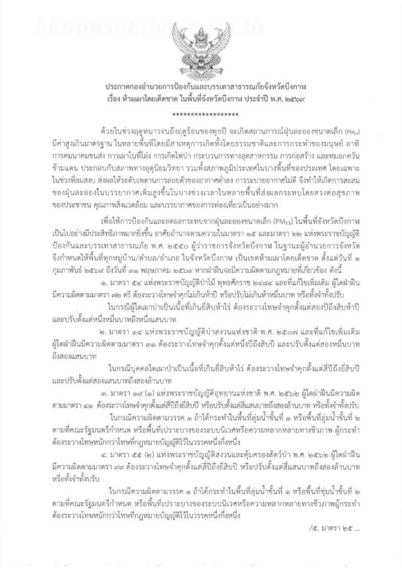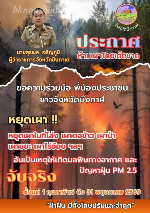ประกาศฯ ห้ามเผาโดยเด็ดขาดในพื้นที่จังหวัดบึงกาฬ พ.ศ. 2569 >>>ข่าวประชาสัมพันธ์, ไฮไลท์ Bom@phomakkhaeng จำนวนผู้เข้าชม : 4 FacebookFacebookXXLINELine